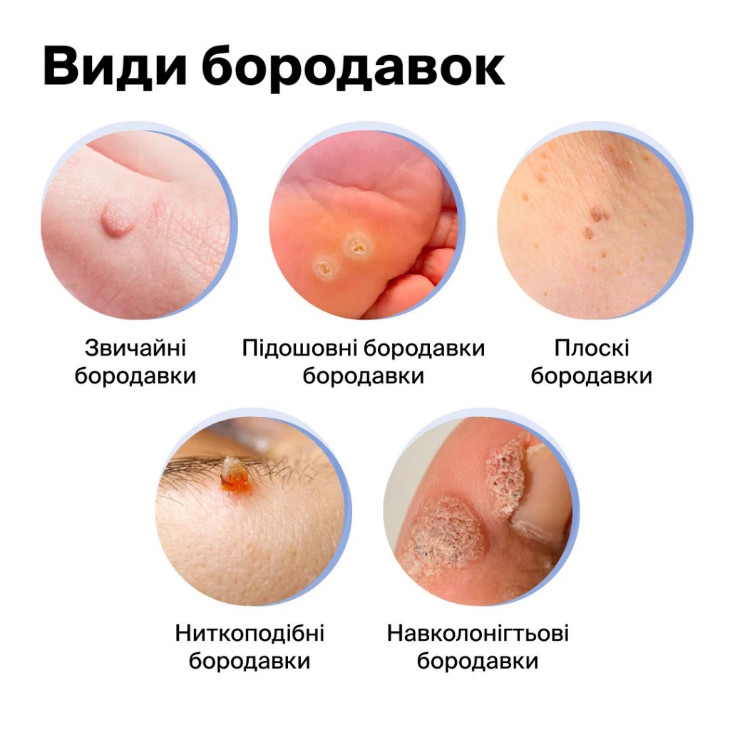 Бородавки – доброякісні новоутворення, що виникають внаслідок інфікування вірусом папіломи людини. Збудник бородавок може передаватися під час контакту з хворим, через предмети загального користування або внаслідок порушення правил гігієни. Найчастіше бородавки з’являються на таких ділянках тіла, як руки, стопа, пальці, ноги, область біля нігтів, на шиї (на будь-якій ділянці тіла або обличчі).